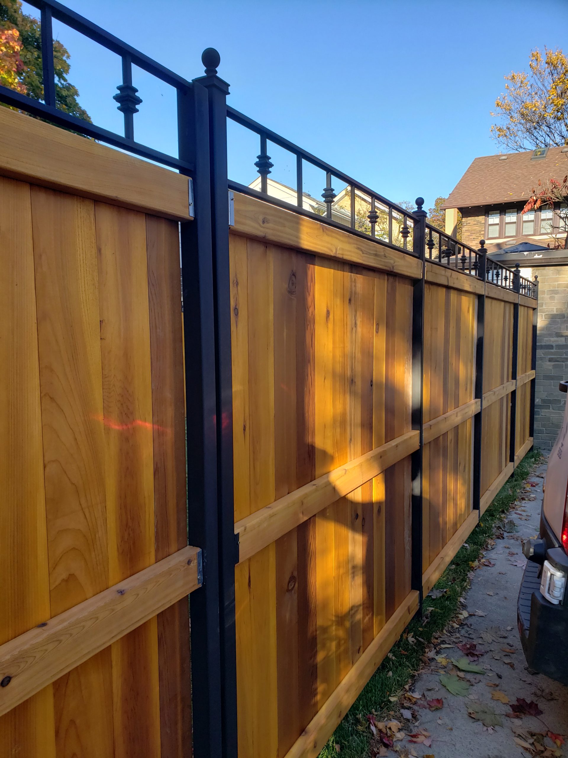 For more than 20 years, Art Metal Workshop has been Toronto’s #1 choice for custom wood and metal fences that combine the warm elegance of wood with the modern durability of metal. Our hybrid wood and metal fences are built to enhance your home’s curb appeal while providing unmatched privacy, security, and weather resistance.
